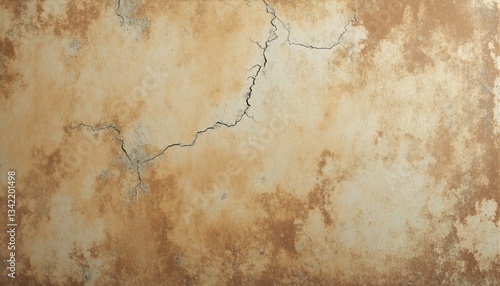 A worn, cracked fresco surface with beige and terracotta hues blending into each other.