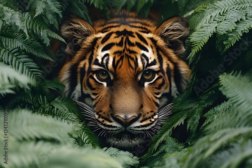 Majestic Tiger Amidst Lush Greenery in Jungle Wilderness
