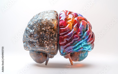 3D rendering of human brain showing the left and right hemispheres of the human brain work differently. Creativity and logical thinking structure.