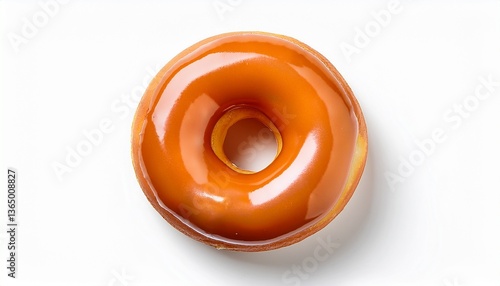 top view glazed donut with a smooth and shiny icing isolated on white