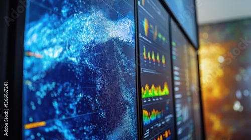 An AI powered climate modeling system predicting the effects of climate change and suggesting mitigation strategies, Environmental technology style, photo of