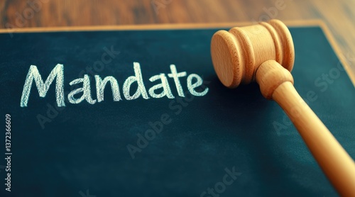 Legal Mandate Announcement Written in Chalk on Blackboard with Gavel