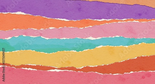 Torn Paper Colorful Stripes Abstract Background. AI Generated