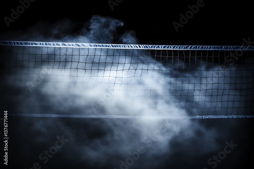 Dramatic volleyball net in foggy atmosphere against dark background