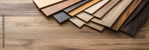 Wood laminate floor square samples. Assortment of parquet or laminate floor samples in natural colors. Oak wooden background.