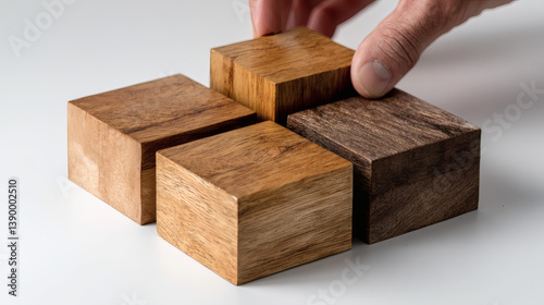 Vier Holzbausteine in unterschiedlichen Farbtönen – Symbol für Vielfalt und Entscheidung
