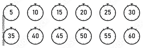 Set of Stopwatch icons set. Timer symbol. Outline stopwatch icon. Alarm pictogram,of Vector.