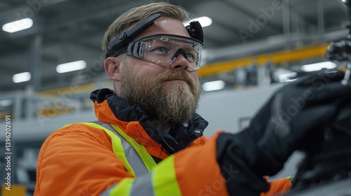 Factory worker using augmented reality glasses