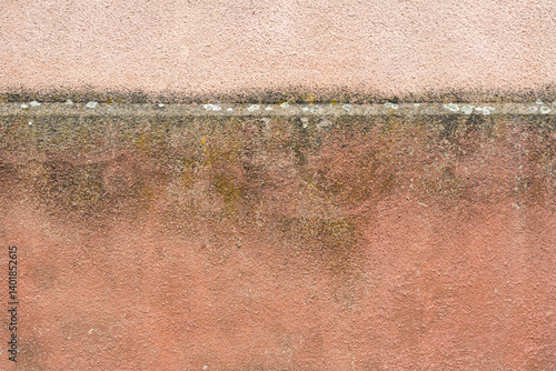 Zbliżenie na zniszczony tynk budynku z wykwitami i zaciekami