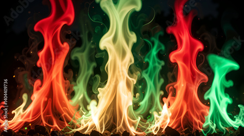 Fuegos artificiales con los colores de la bandera mexicana: verde, blanco y rojo.
