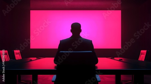 Marketers presenting holographic projections of audience insights and performance trends in a sleek modern boardroom setting