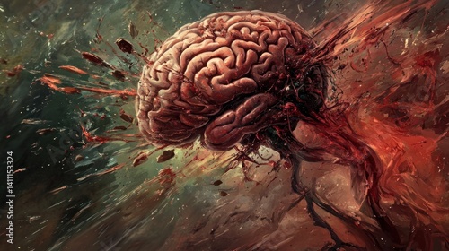 shattered mind depiction of psychological distress and mental health issues shown through abstract violent representation of cognitive damage