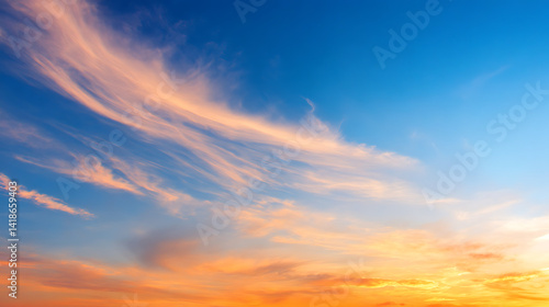 sunset with cirrus clouds, beautiful cloud patterns at dusk, sunrise, orange clouds in the sky, sky background, sky gradient, twilight, heaven, nature, blue sky,
