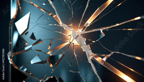 Cracked mirror showcases a single, dominant longitudinal crack that disrupts the otherwise flawless reflective surface.