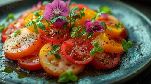 Close-up of a beautifully arranged plant-based meal, showcasing vibrant vegetables and modern culinary presentation