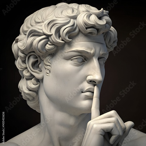 Quite please sign hand gesture David sculpture, stay silent, top secret. 3d rendering