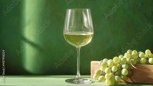 Elegant glass of white wine with fresh grapes. Sauvignon Blanc Day