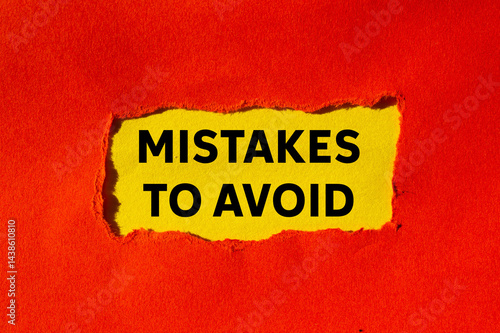 Mistakes to avoid message written on ripped torn red paper on yellow background. Conceptual mistakes to avoid symbol. Copy space.