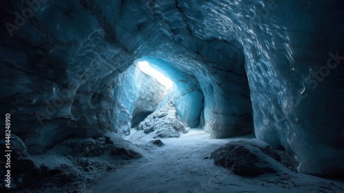 Majestic Ice Cave with Glacial Blue Walls and Natural Light Rays