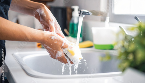 Ręczne zmywanie naczyń w zlewie
