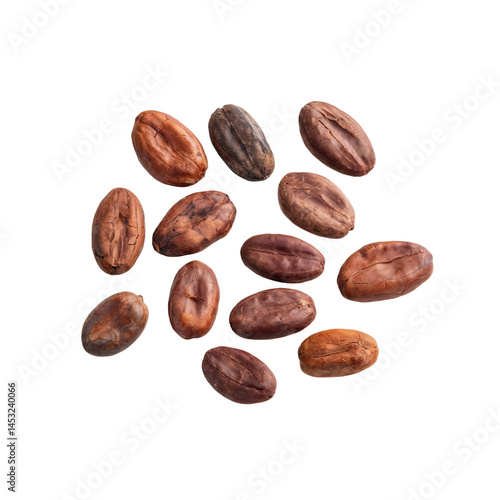 High quality image of brown cocoa beans isolated on perfect for food product packaging design on transparent background