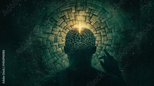 person trapped in a maze of ever-changing signs pointing in contradictory directions mental confusion, contradictory messages, psychological maze, decision paralysis, information overload, cognitive