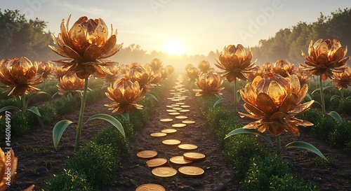 Imagem criativa de moedas crescendo como plantas, representando rendimento