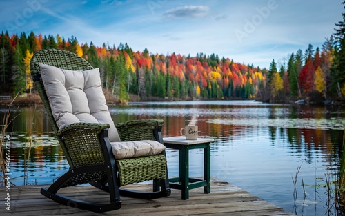autumn Ontario, Canada, Autumn rocking chair by lake