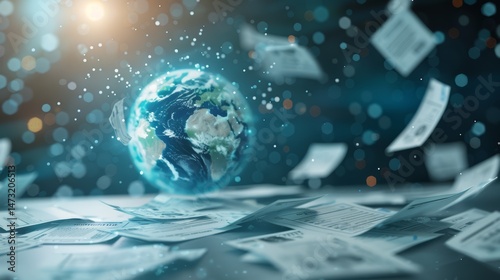Future Financial Planning in Zero-G Office: Holographic Calculator, Bankruptcy Documents, and Earth View from Space