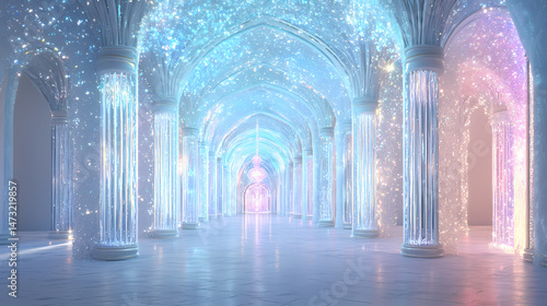 Frozen palace: a winter wonderland of ice and light. [Crystalline Wastelands] | Glimmerdust Horizon | frozen sparkle. Illustration