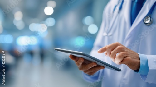 Doctor Reviewing Patient Test Results on Tablet in a Modern Medical Facility During a Consultation