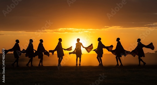 Sunset Silhouette Dance: Maasai Warriors Grace the African Savanna at Dusk