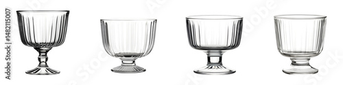 Elegant glass trifle bowls with vertical ridges, showcasing transparent designs ideal for desserts, parties, or elegant dining, enhancing any table setting