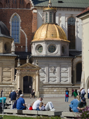 Kaplica Zygmuntowska na Wawelu w słoneczny dzień – zabytkowa architektura i życie codzienne Krakowa