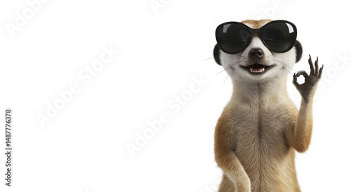 Cool Meerkat in Sunglasses Giving Okay Sign on White Background