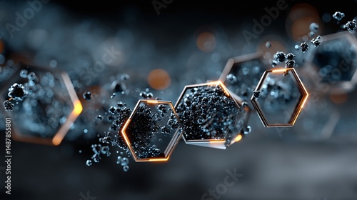 Sleek cybernetic blue background with neon circuit flows and structured floating hex shapes