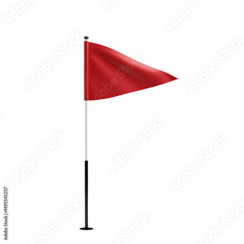 A small, triangular red golf flag on a pole against a transparent background