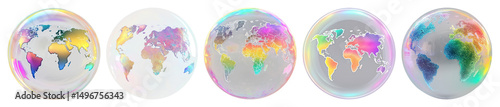 PNG Colorful iridescent globes display, element set on transparent background