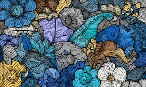 Abstrakcyjny wzór z motywem kwiatowo-morskich form