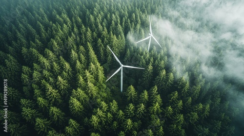 Elektrownia wiatrowa w lesie, widok z lotu ptaka