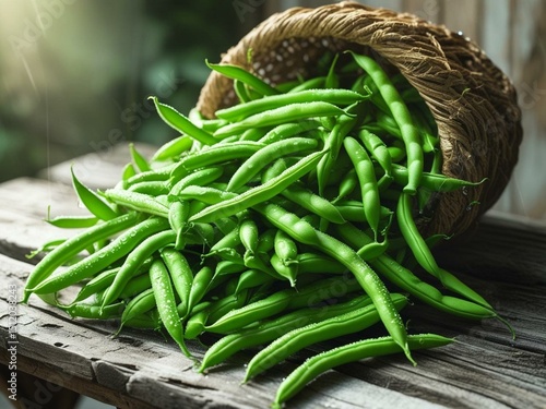 Kosz świeżo zerwanej zielonej fasolki szparagowej