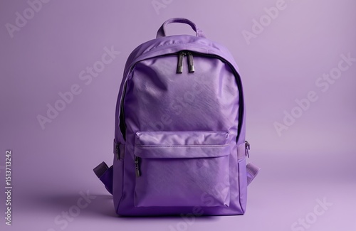 Purple backpack isolated purple background. Stylish schoolbag for students travelers. Modern design features zip, straps, pockets. Trendy fashion accessory, durable, functional, perfect for everyday