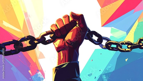 Wide Angle Juneteenth Flag in Hand Centred Chain Image