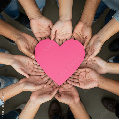 Pink Heart Surrounded by Hands: Unity, Compassion, and Community isolated background