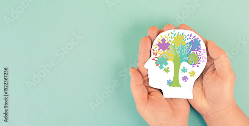 ADHD, attention deficit hyperactivity disorder, mental health, head of child, colorful jigsaw or puzzle pieces, cognitive difficulty