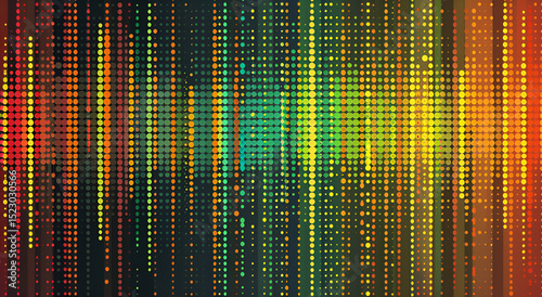 Kolorowa matryca pionowych punktów i linii przypominająca dane cyfrowe – tło technologiczne z efektem świetlnym
