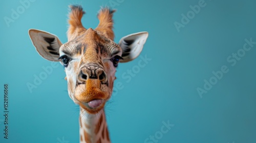 A charming portrait of a giraffe sticking out its tongue against a vibrant background, offering a playful glimpse into wildlife that showcases the beauty and quirks of nature.