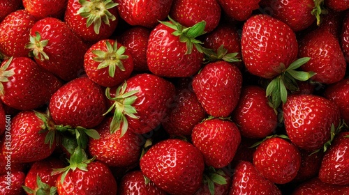 A bunch of red strawberries are piled on top of each other. The strawberries are ripe and ready to eat