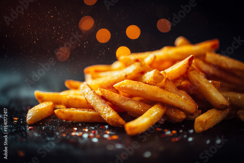 Aromatyczne, złociste frytki posypane solą i przyprawami, idealne jako przekąska lub dodatek do dania głównego. Chrupiąca przyjemność.