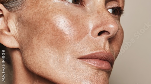 Close up of elderly woman's skin showing pigment spots and natural aging